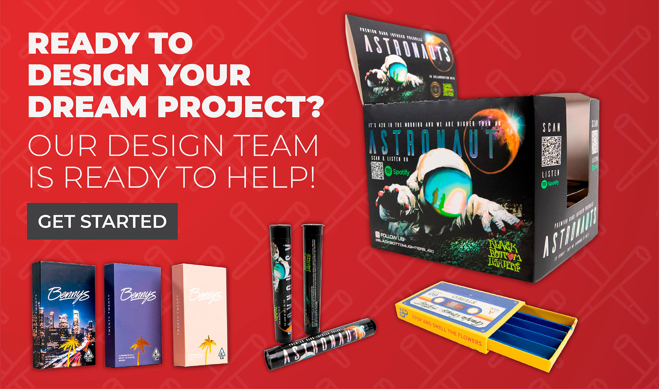 Our Pre-Roll Expert design team helps brands launch, upgrade or rebrand pre-roll lines with confidence. Design services range from custom dielines to full logo, label, shrink sleeve and box design with multiple revision rounds.