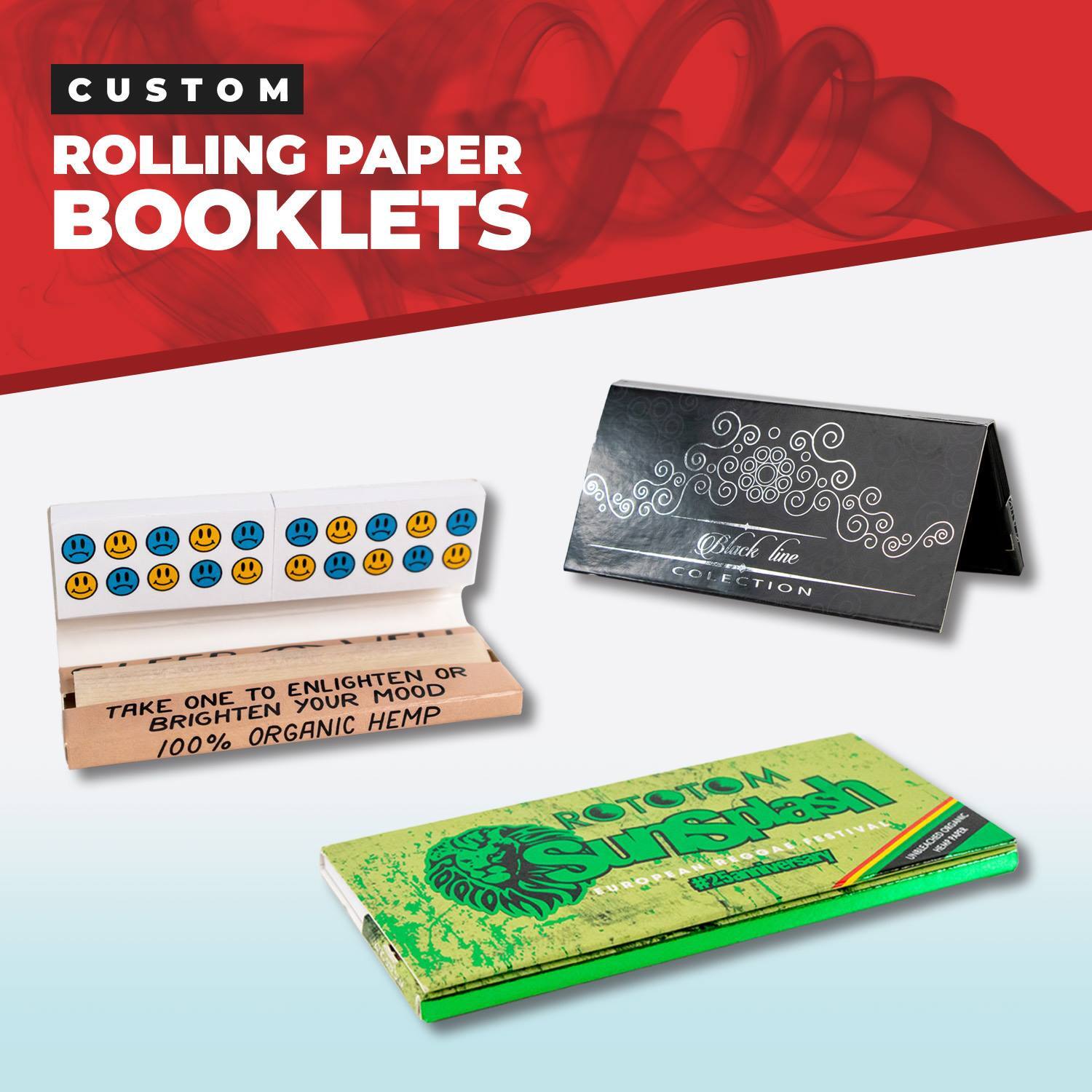 Custom Rolling Paper Booklets are one of the most cost-effective ways to put your brand directly into the hands of consumers. Branded rolling paper booklets are ideal for retail, promotions, trade shows, giveaways and much more, featuring full-coverage custom branding across the outer pack, papers and tips.